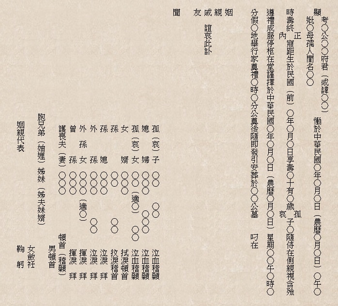 外祖父:外祖考 妻子:亡妻、故妻、先室
